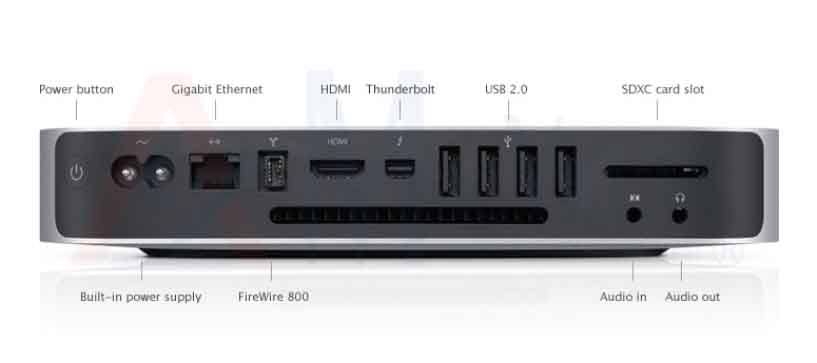 Việc kết nối và truyền dữ liệu trở nên nhanh chóng hơn bao giờ hết khi chiếc MacMini MC815 sử dụng các cổng kết nối gồm một Firewire port 800,bốn cổng USB 2.0,kết hợp dòng âm thanh trong(digital/analog)và kết hợp dòng âm thanh ra/headphone(digital/analog)minijack,1/100/100 Base-T Gigabit Ethernet port,802.11/a/b/g/n Wifibluetooth 4.0, khe cắm thẻ SDXC và một cổng HDMI cũng như một cổng Thunderbolt mà là ngước với Mini DisplayPort và tương tự hỗ trợ một màn hình ngoài ở 2560x1600ps và đi một tín hiệu âm thanh là tốt.Ngoài ra,Thunderbot cũng hỗ trợ các thiệt bị ngoại vi khác mà sữ dụng tiêu chuẩn Thunderbolt cung cấp lên đến 10 Gbps băng thông theo cả hai hướng làm cho cổng Thunderbolt nhẹ hơn so với cổng truyền thống . Bên trong cũng có một bộ xử lý, kiến trúc, RAM, card đồ họa nhanh hơn cũng như cải thiện khả năng không dây.Các tín đồ yêu thích đồ hoạ thoải mái sáng tạo và trải nghiệm với các ứng dụng mà Mac Mini MC 815 mang lại.Tính thẩm mĩ được đánh giá cao khi mà tất cả hệ thống nhỏ Mac được cấu hình mặc định mà không có một màn hình ,bàn phím,hay chuột với tuỳ chọn sẵn có ở Apple mang lại vẻ đẹp tinh tế và sang trọng.